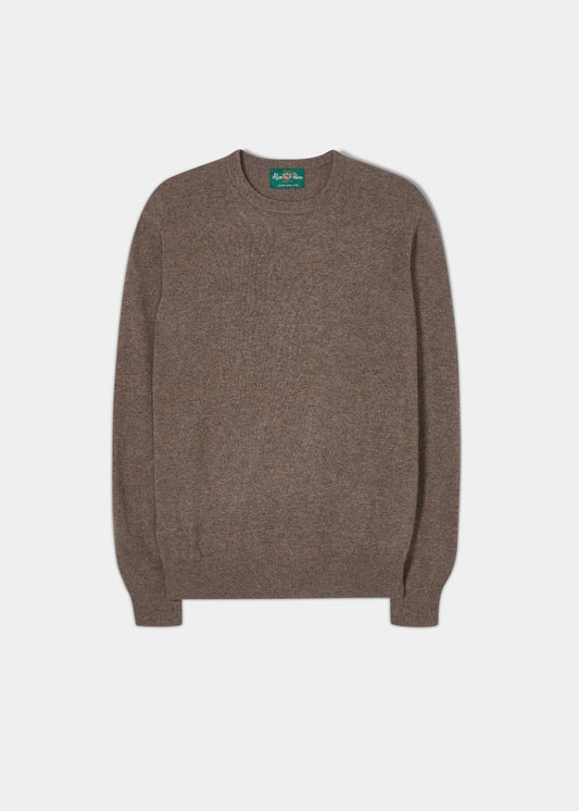 Maglione girocollo da uomo in lana d'agnello Geelong in mogano - Vestibilità regolare