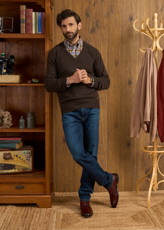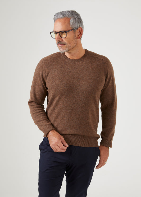 Maglione da uomo in lana d'agnello Dorset in tabacco - Vestibilità classica