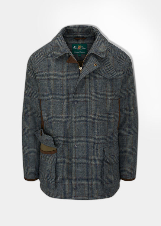 Cappotto impermeabile in tweed Surrey con motivo blu a quadri – taglio da caccia