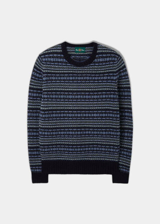 Maglione Towthorpe da uomo in lana d'agnello Fairisle Blu navy - Vestibilità regolare