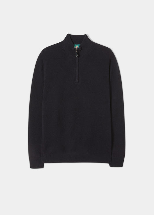 Maglione Sutherland Lambswool con cerniera 1/4 in blu navy - Vestibilità regolare
