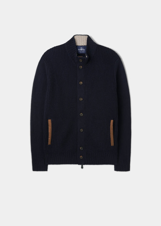 Giacca da uomo in lana punto waffle Duchally, colore blu navy.