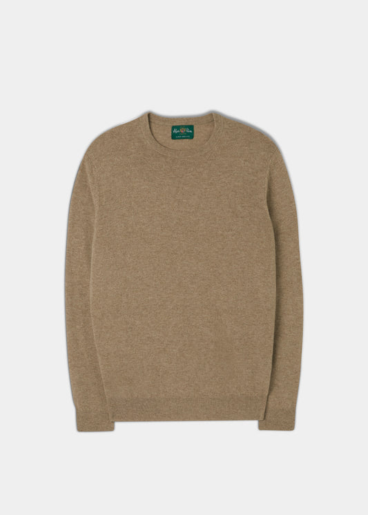 Maglione da uomo girocollo in lana Geelong d'agnello color cammello - Vestibilità regular.