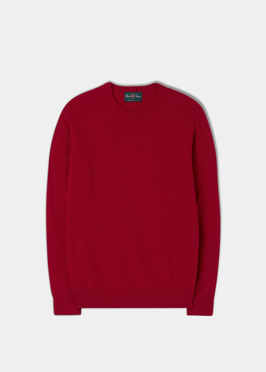 Maglione da uomo girocollo in lana d'agnello Geelong color lampone - Vestibilità regular