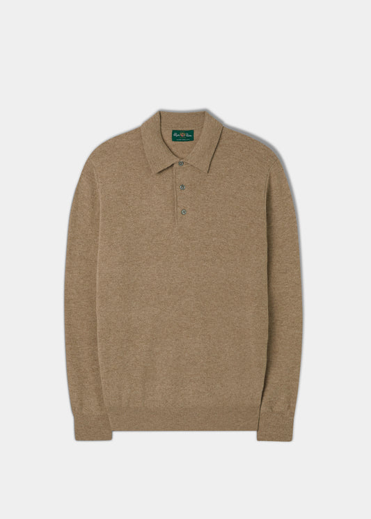 Polo a maniche lunghe in lana Geelong da uomo color beige - Vestibilità regular