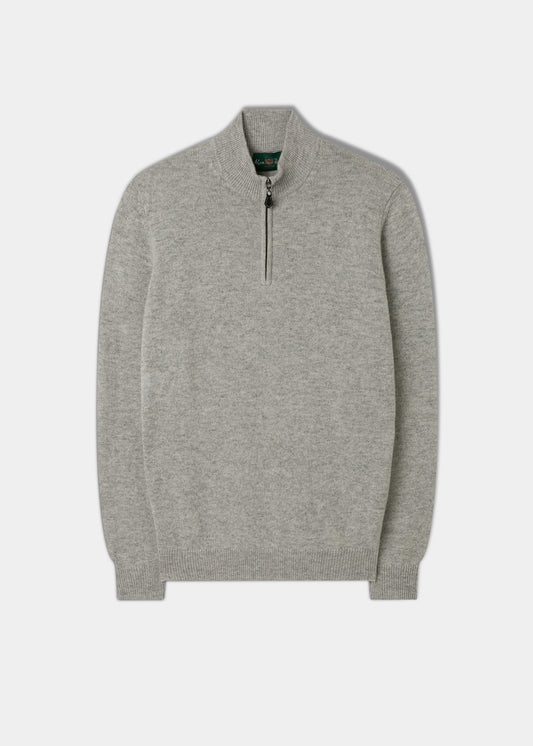 Maglione da uomo in lambswool con zip da 1/4 colore Grigio perla - Vestibilità regolare