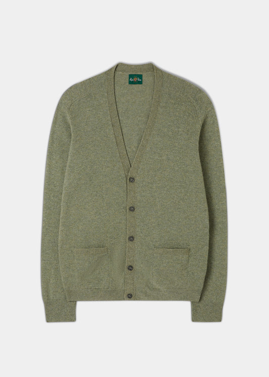 Cardigan da uomo in lana d’agnello color Verde frutteto - Vestibilità classica
