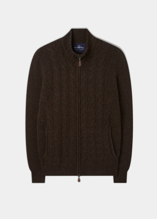Maglione Aberfoyle da uomo in lambswool con zip e collo alto – color cacao