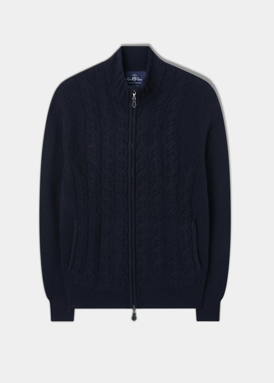Maglione Aberfoyle da uomo in lambswool con zip e collo alto – blu navy