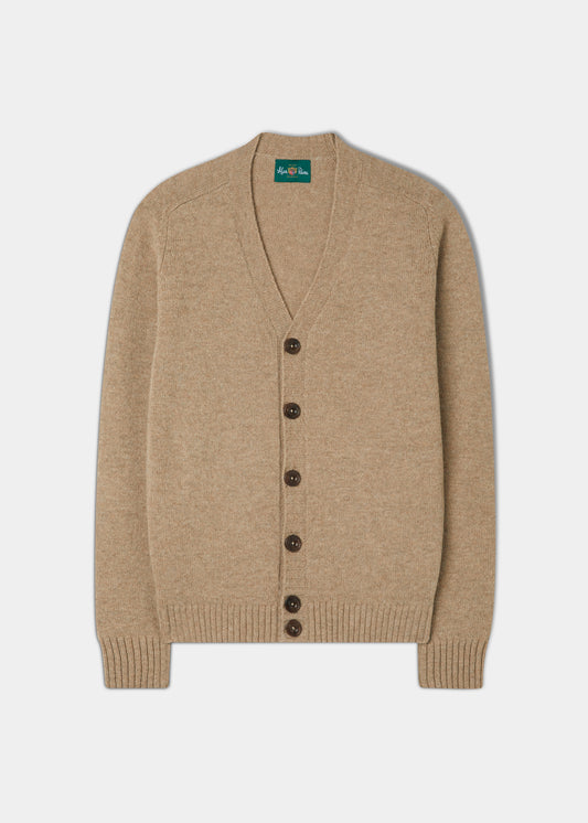 Cardigan da uomo in lana Shetland color Quercia Chiaro