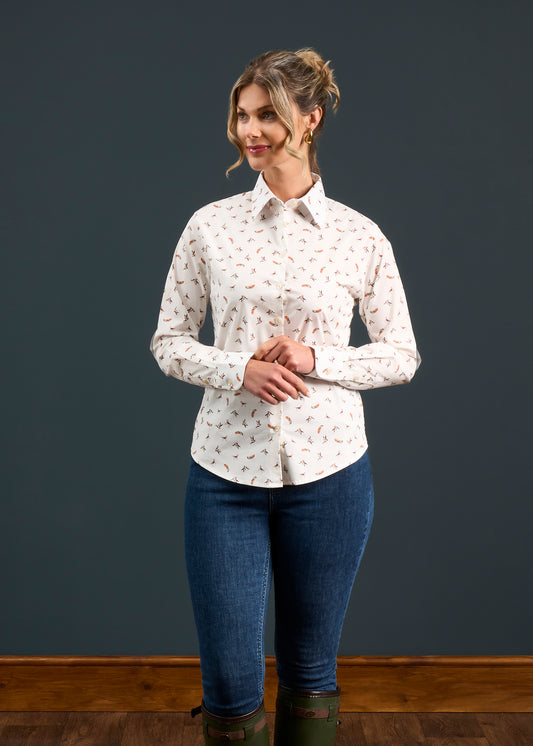 Camicia da donna in cotone stampato Lawen - Design fagiano