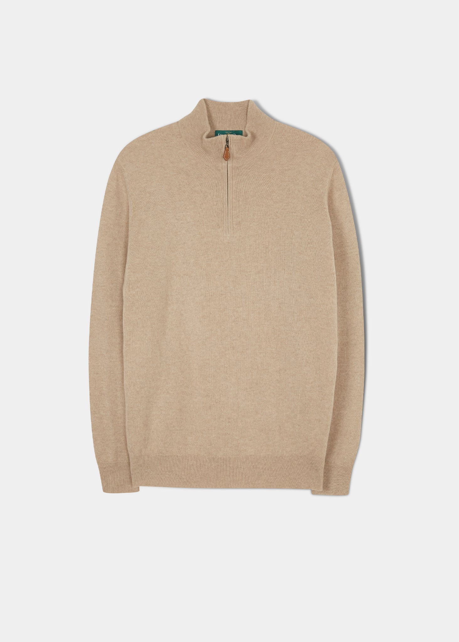 Maglione Hanbury Cashmere con zip e collo a lupetto in lino - Vestibilità regolare