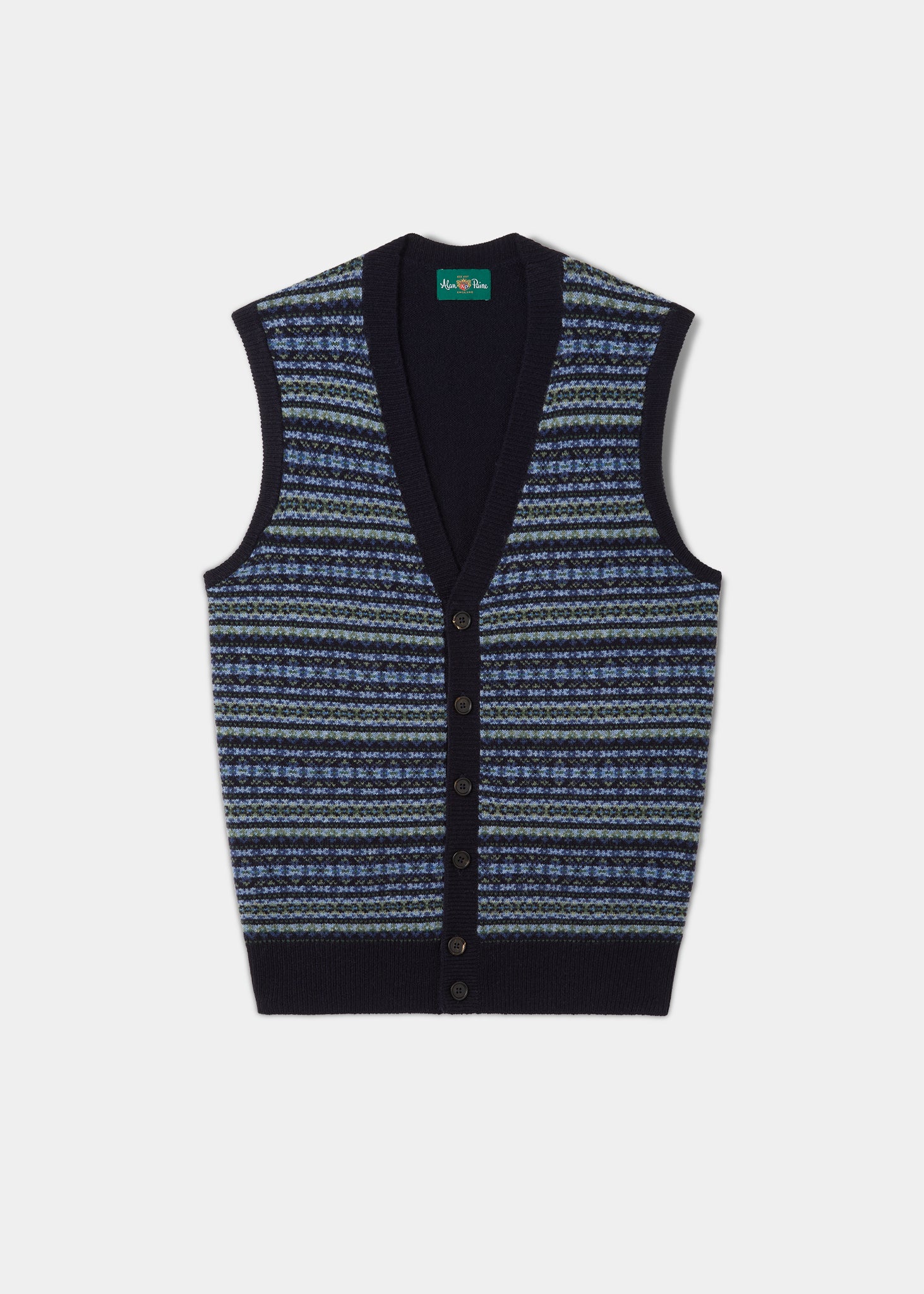 Maywick Men's Lambswool Fair Isle Waistcoat In Navy