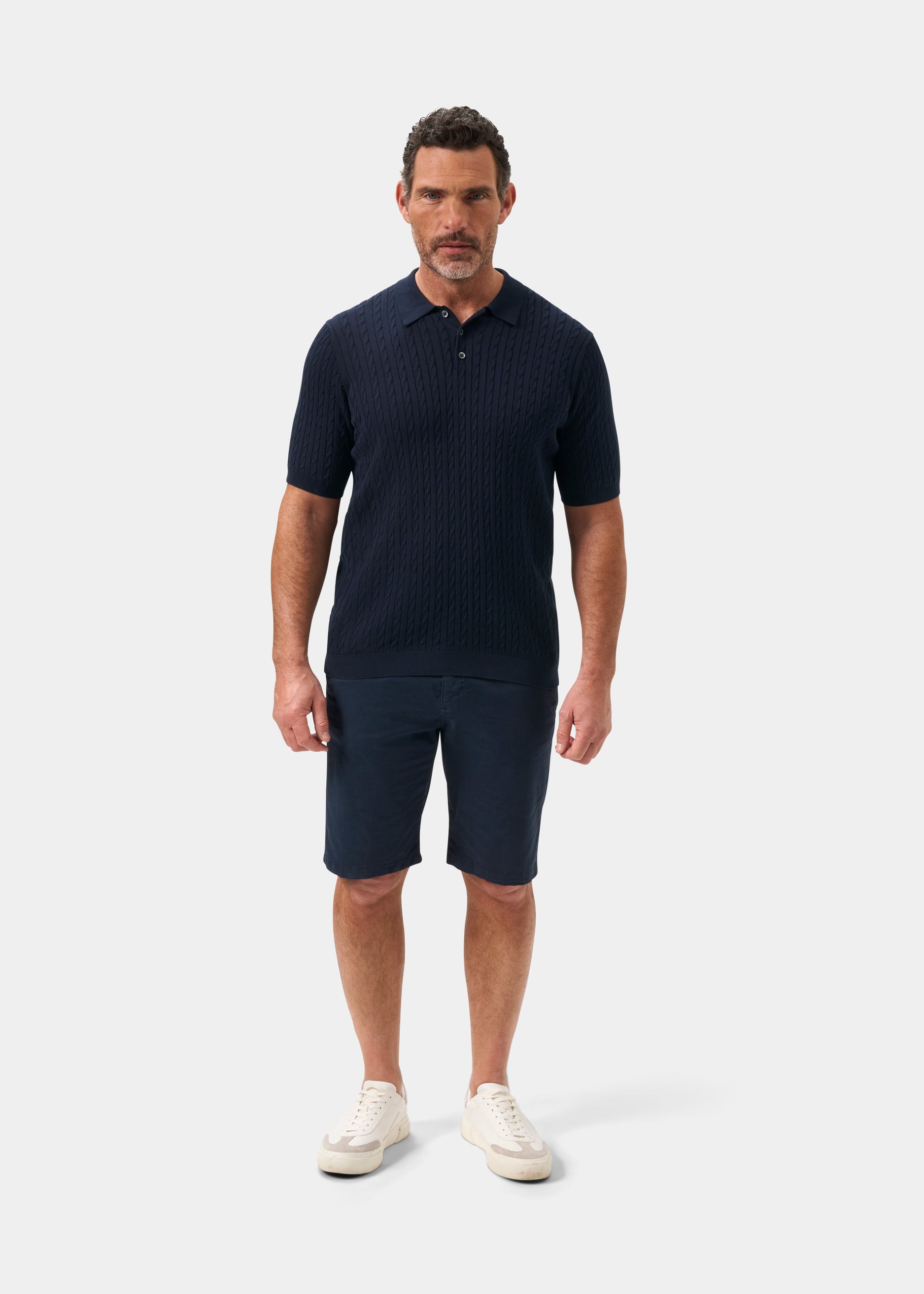 Portmellon Men's Baby Cable & Bar Polo In Dark Navy