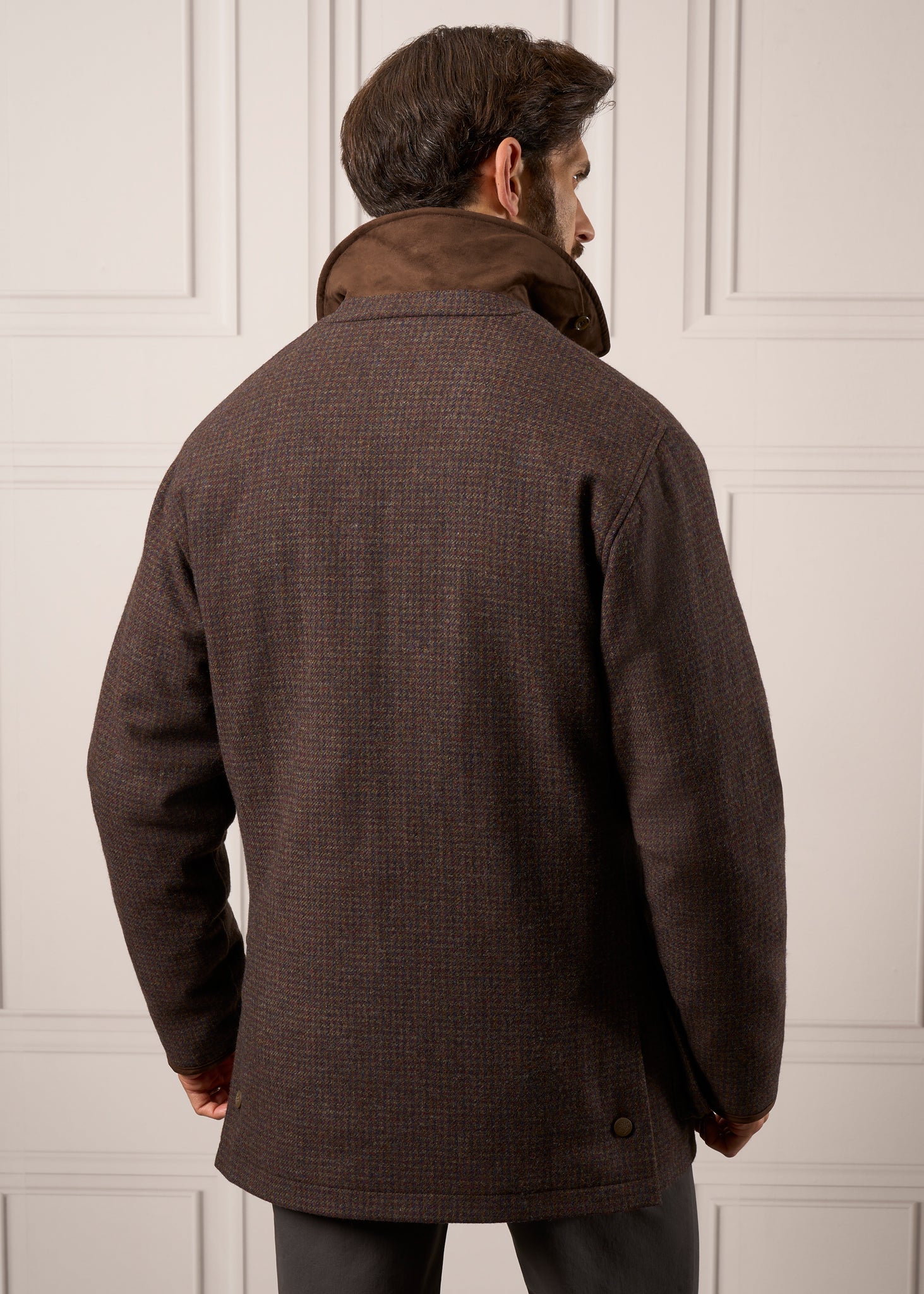 The Surrey waterproof coat in Bramble is crafted in a specially selected, contemporary-coloured medium weight pure wool tweed. It’s designed with a roomier shooting fit but retains a flattering shape. It has a sit-down collar, two side vents and a front raglan and back set-in sleeve to enable you to move freely, making the coat extremely comfortable to wear.